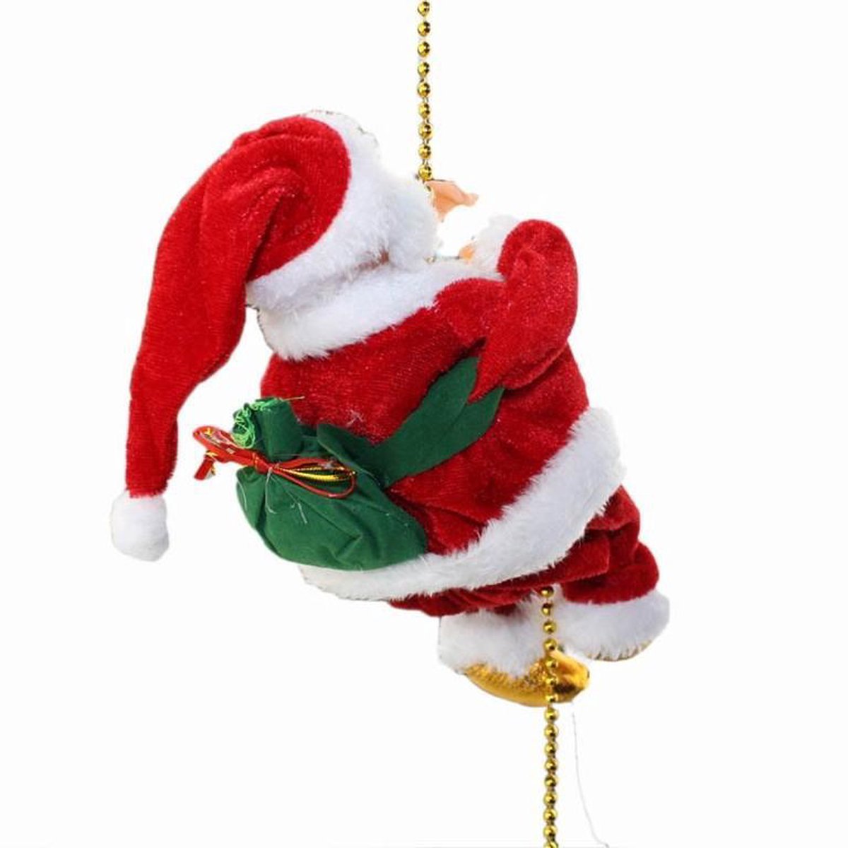 Kerstman zingend en klimmend hangend via Ketting