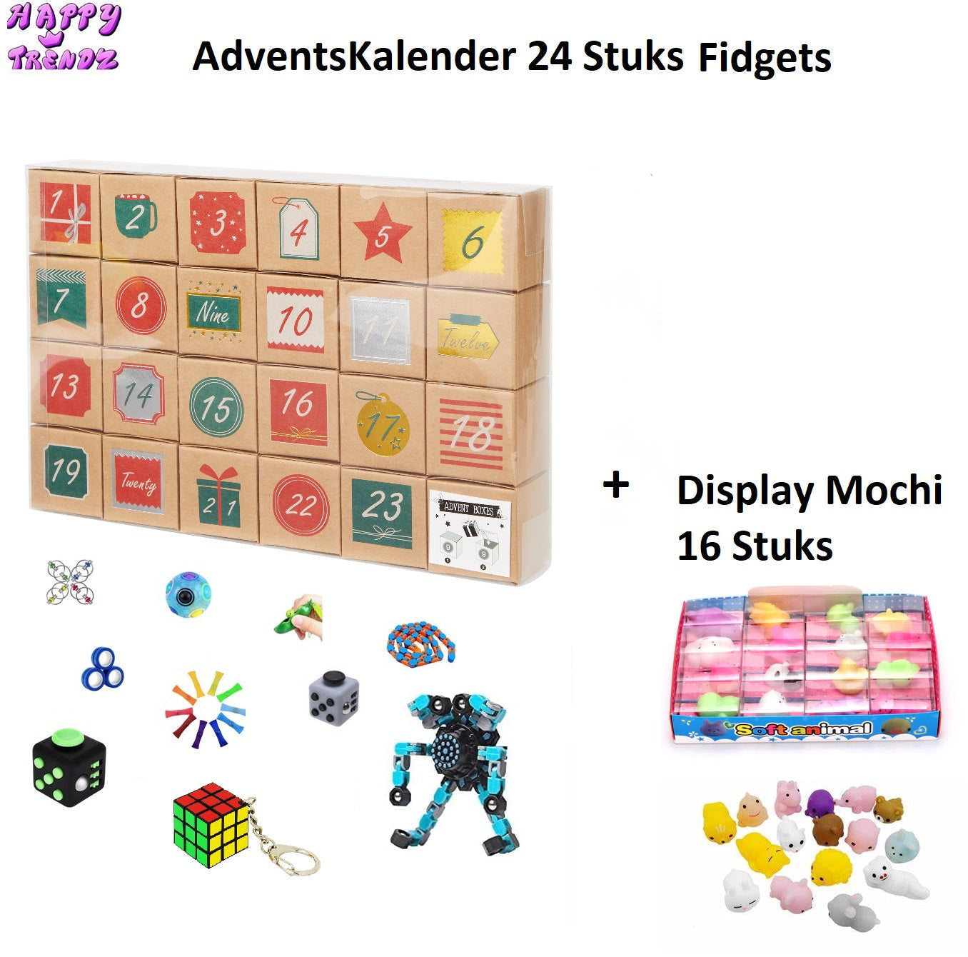 Adventskalender gevuld met 24 fidgets en mochies + 16 moochies display