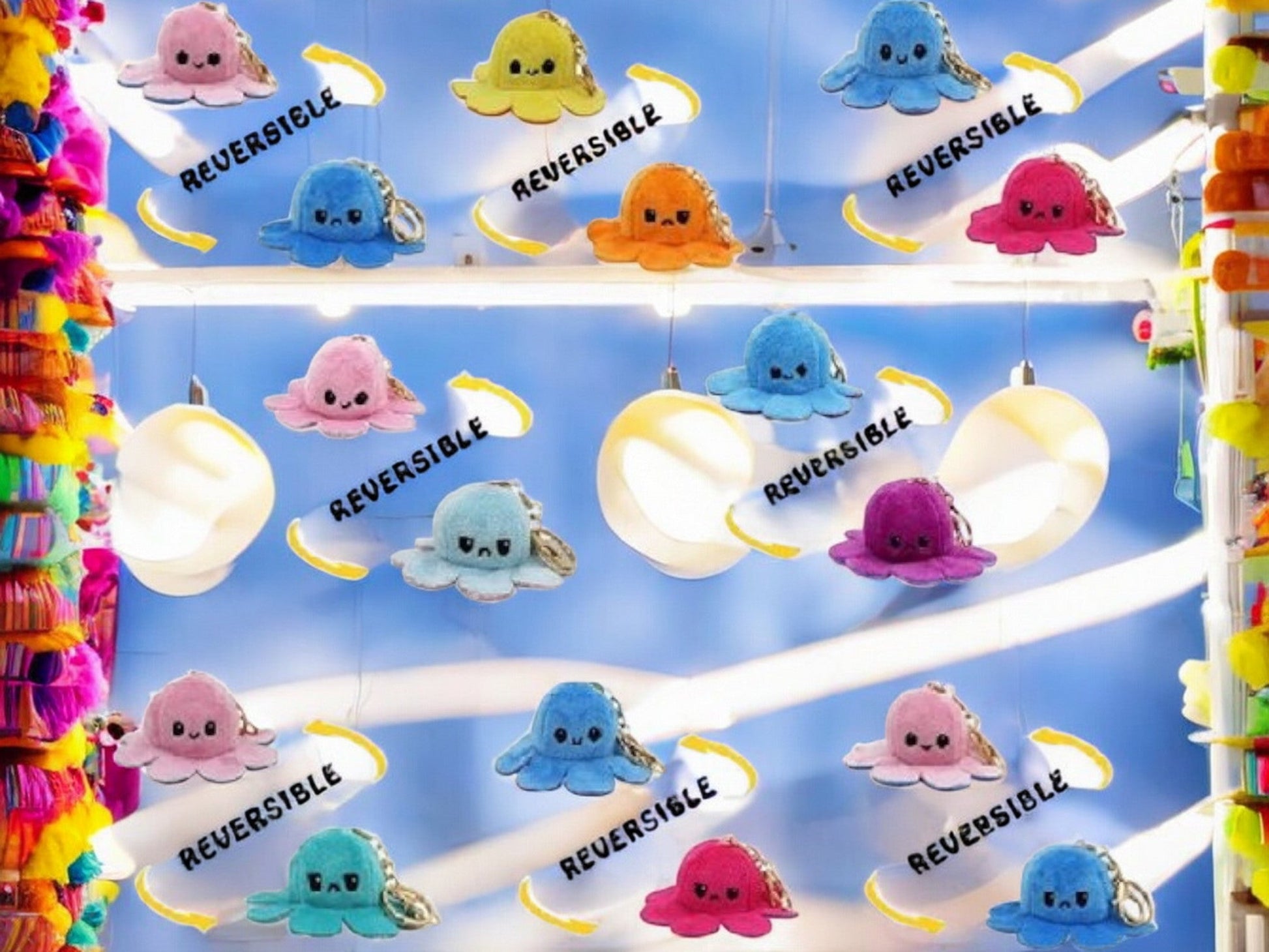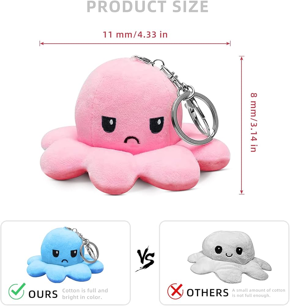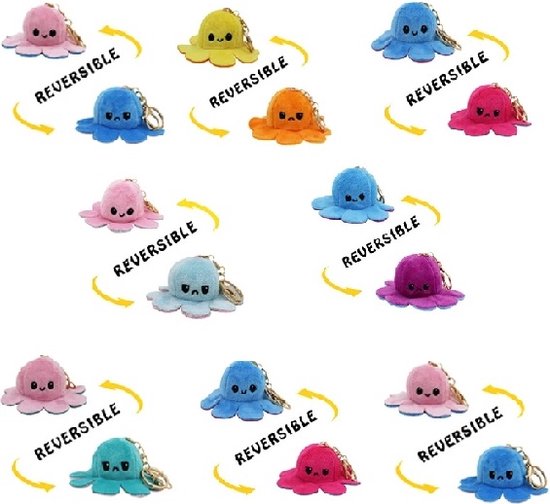 Schattige Mood Octopus Sleutelhangers! Omkeerbare pluche keychains die je stemming weergeven. Verkrijgbaar bij Happy-Trendz.nl