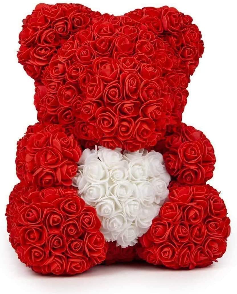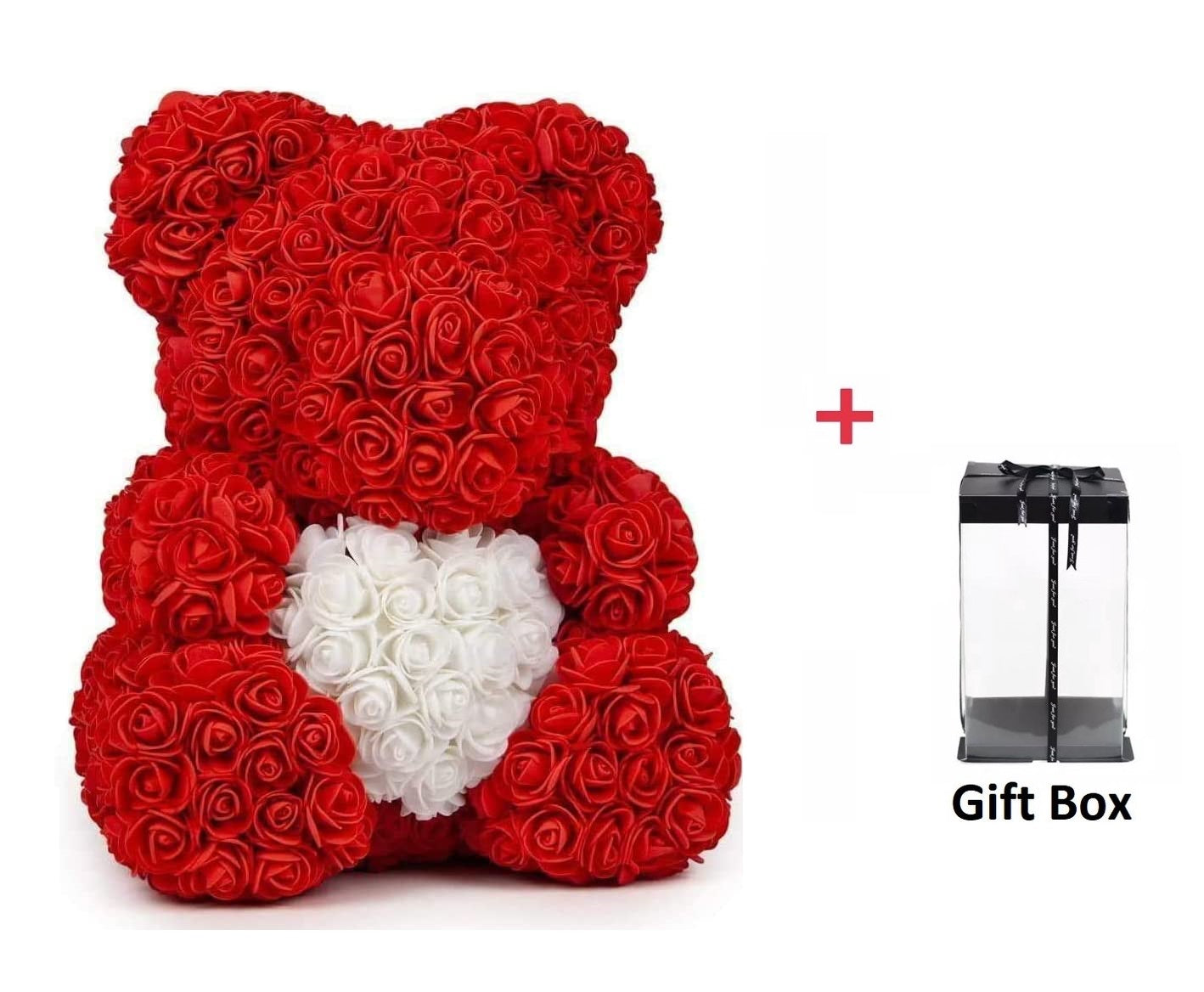 Rozen Beer 37 Cm Rood met wit hart in Luxe Gift box