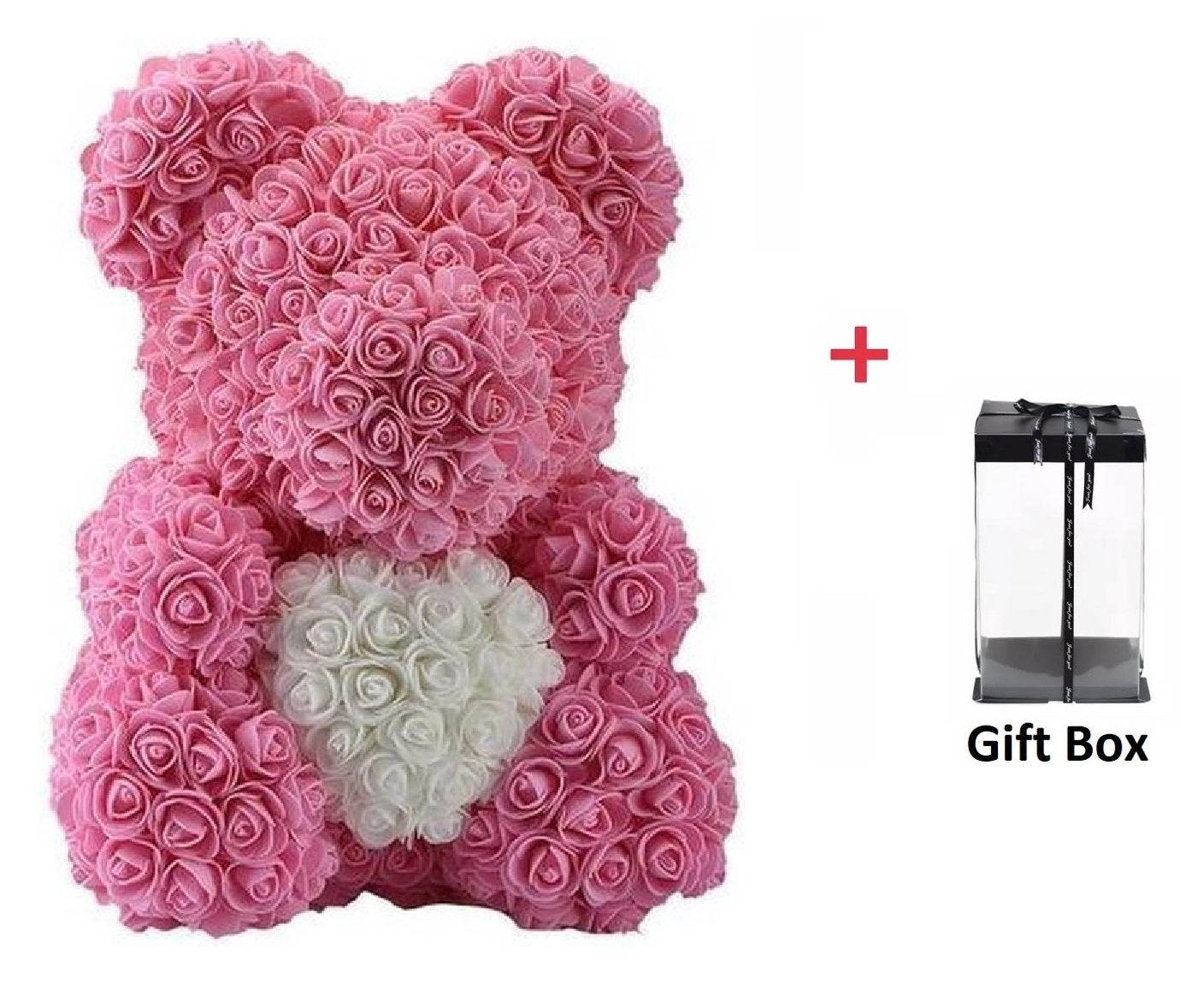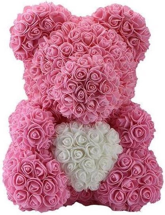 Rozen Beer 37 Cm Rood met wit hart in Luxe Gift box