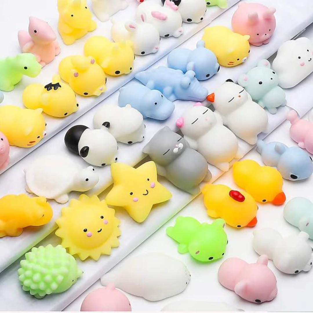 Mochi squishy's zijn zacht, knijpbaar en super schattig! Mochi squishy fidgets zijn er in veel verschillende vormen, kleuren & maten.