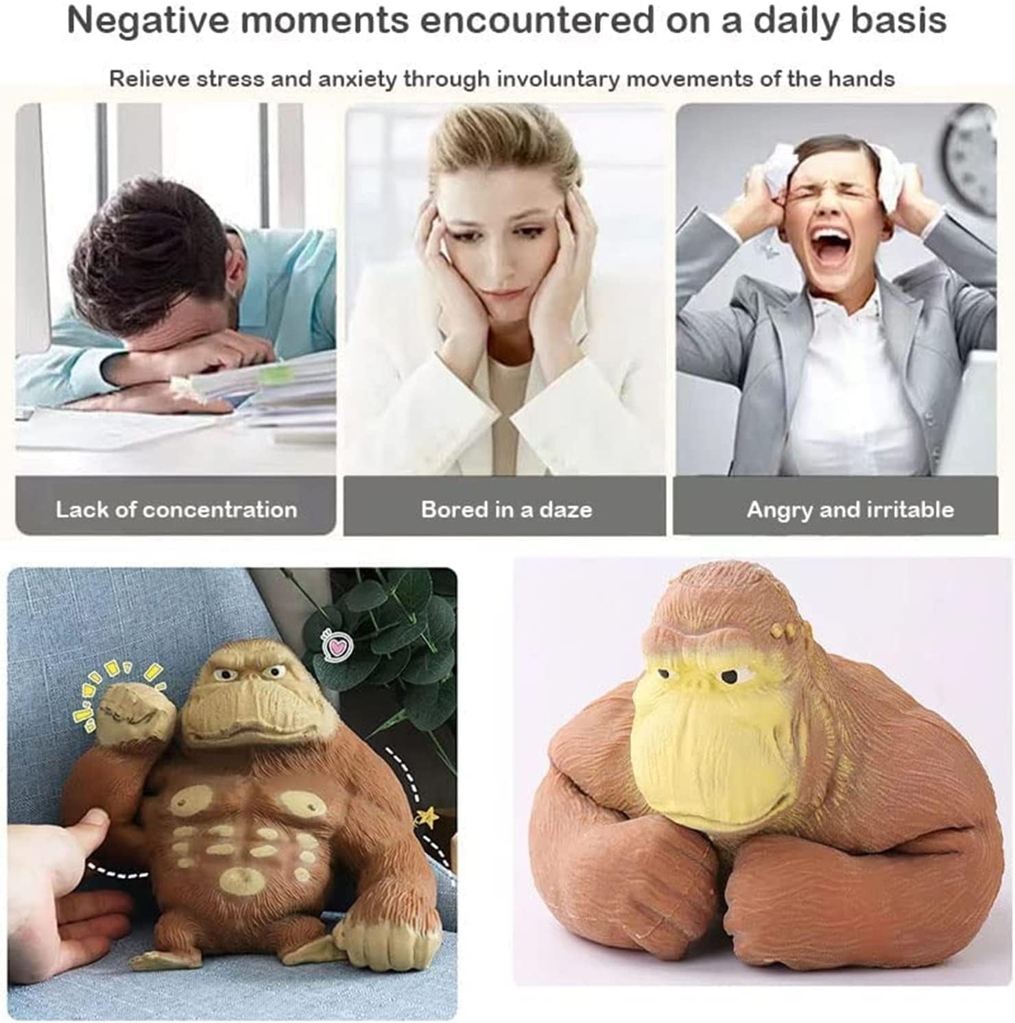 - Maat: 12x15cm, ongeveer 600g, latex gorilla speelgoed is schattig gorilla design en realistische kleur, zacht en rekbaar. Dit gorilla-stressspeelgoed kan stuiteren, strekken, kneden, knijpen om kalme concentratie en ontspanning te bevorderen, angst en spanning te verminderen, ze helpen ook stress te verlichten en de bloedcirculatie in de handen te verbeteren.